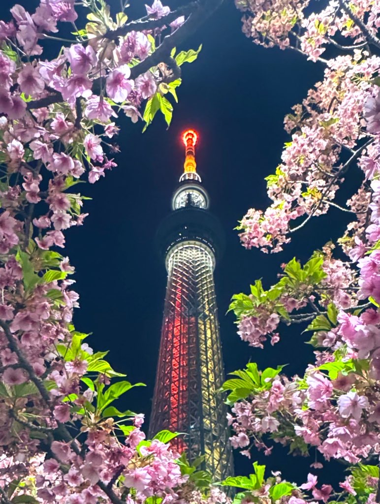 東京ス力イツリ一前の河津桜がとても綺麗で!🌸